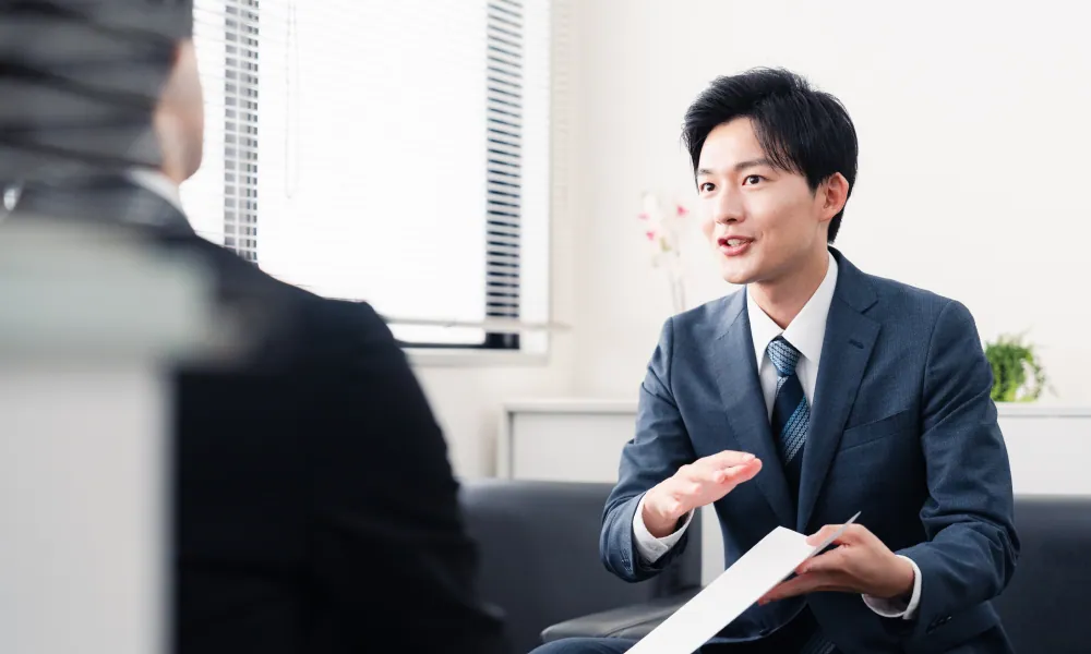と初回面談を行う初回面談では、現時点でのお悩みや不明点などにおこたえしながら、講座詳細のご紹介やスキル・キャリアについてのご質問をメインにさせていただきます。それぞれのキャリアイメージに合ったおすすめ講座のご提案も可能です。